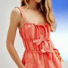Macacão em linho, com elástico na cintura e amarração nos punhos.