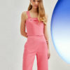 Bermuda em algodão com elastano, detalhe de fechamento lateral e botões forrados do próprio tecido.