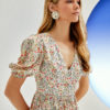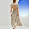 Vestido em seda 100%, estampa exclusiva e detalhe em amarrações costas.