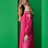 Vestido longo fluído mangas abertas com amarração de laços, fendas laterais. Composição: 80% Viscose 20% Poliamida.