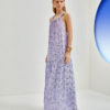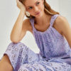 Vestido amplo em linho bordado com rechileau, regulagem no decote frente e decote costas.